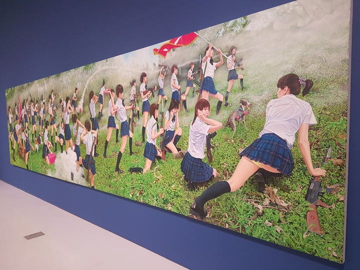 여중생이거나 여고생들이 전쟁을 하는 작품인 것 같은데, 핑크로 된 무기들이 눈에 띄네요.