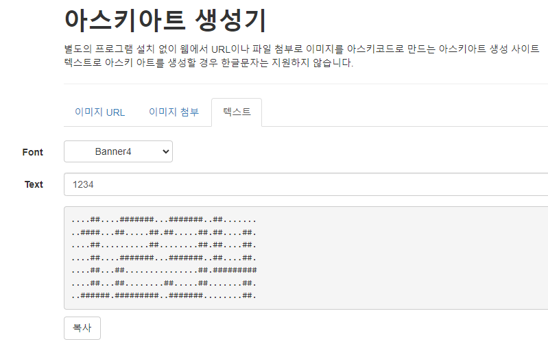 텍스트 및 이미지(URL,파일첨부)를 아스키코드로 만드는 아스키아트 생성 사이트